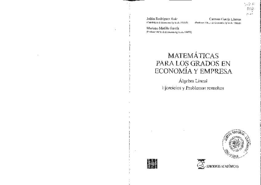 Matemáticas Para la Economía: Álgebra
