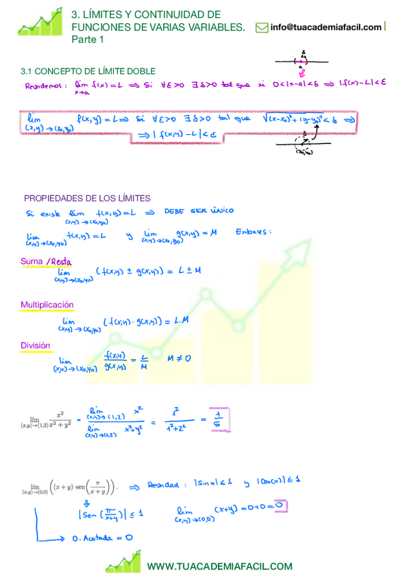 He publicado nuevos apuntes de 1º Matemáticas Para la Economía: Cálculo: 3.-LIMITES-Y-CONT-DE-VARIAS-VARIABLES.-PARTE-1.pdf