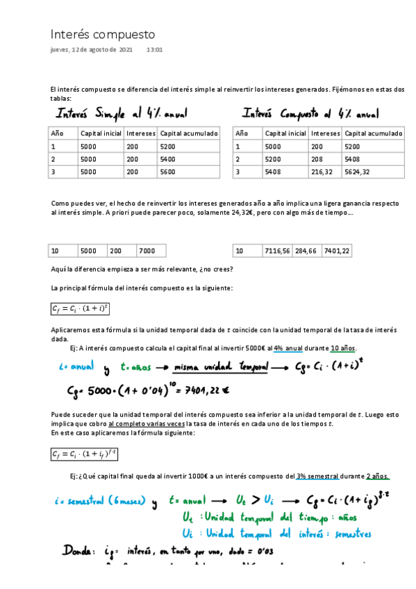He publicado nuevos apuntes de 1º Matemáticas Para la Economía: Cálculo: Interés compuesto