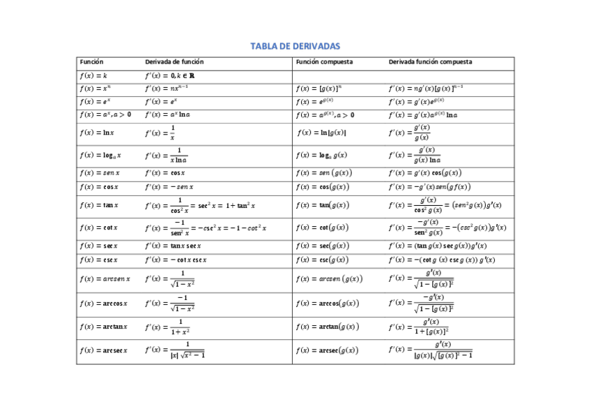 He publicado nuevos apuntes de 1º Matemáticas Para la Economía: Cálculo: Tabla-Derivadas.pdf