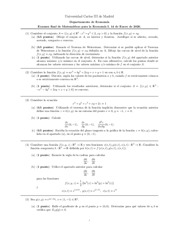 ejercicios matemáticas para la economía I