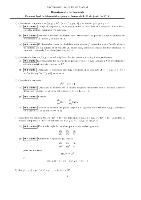He publicado nuevos apuntes de 1º Matemáticas para la Economía I: Examen Junio-19 CON SOLUCIONES