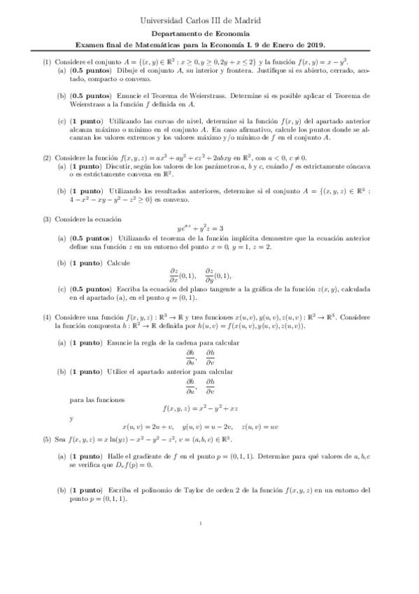 He publicado nuevos apuntes de 1º Matemáticas para la Economía I: Examen enero-19 CON SOLUCIONES