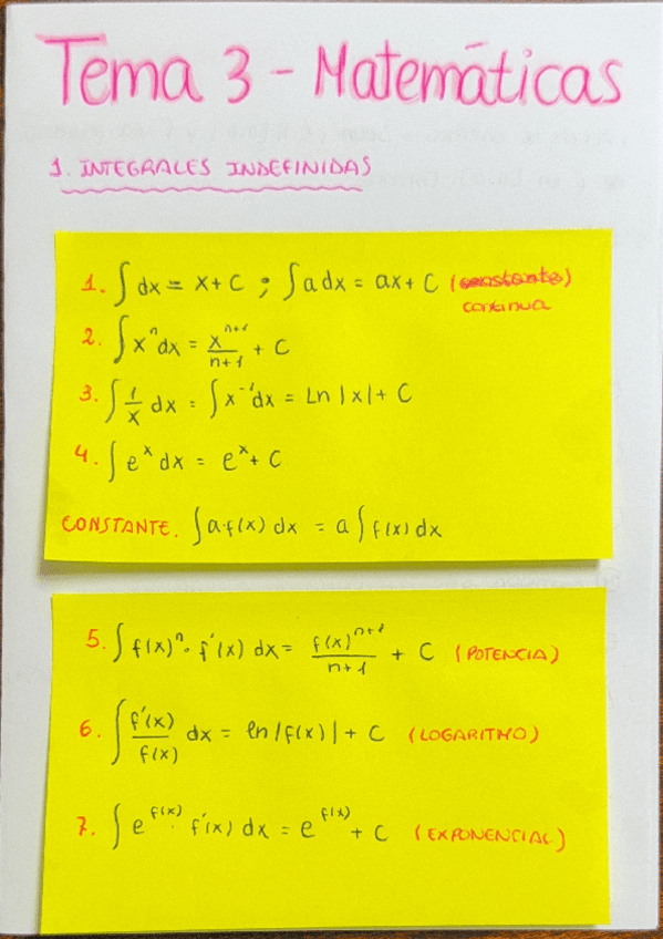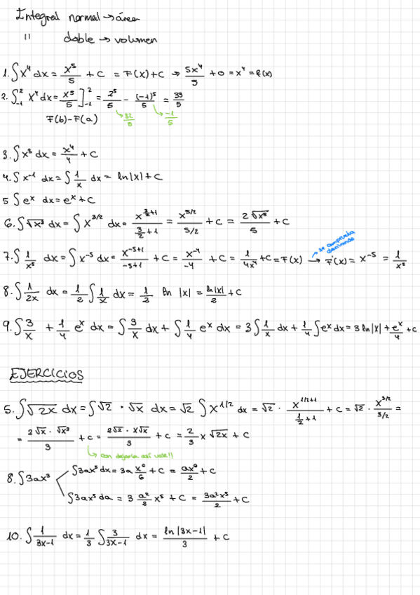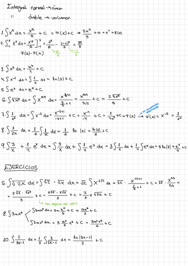 apuntes para examen con ejemplos de la unidad 2 de matemáticas para la economía y la empresa, integrales