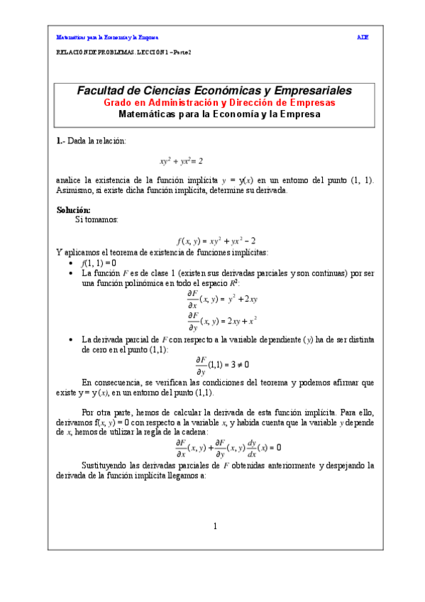 He publicado nuevos ejercicios de 1º Matemáticas para la Economía y la Empresa: PROBLEMAS-LECCION-1-IMPLICITAS.pdf
