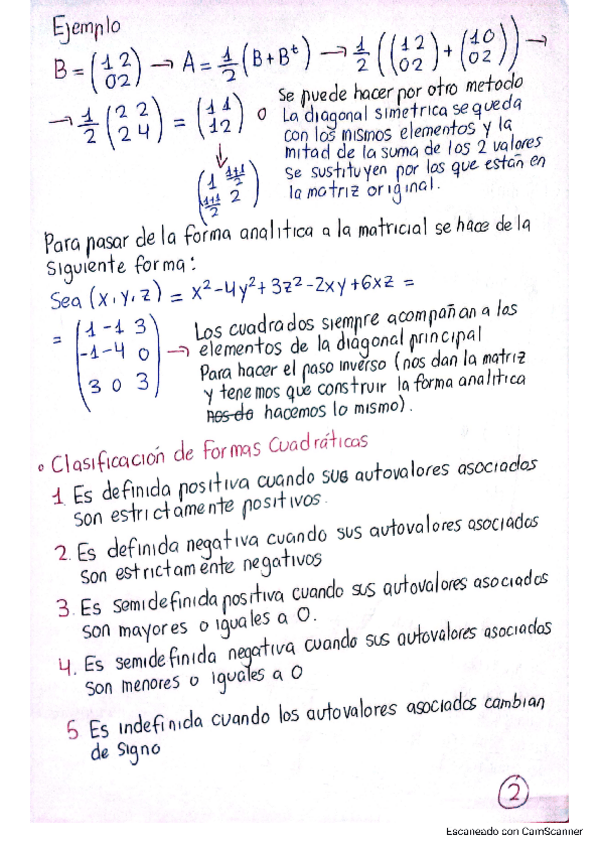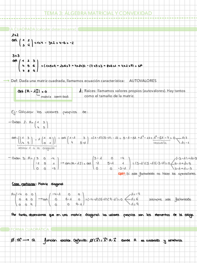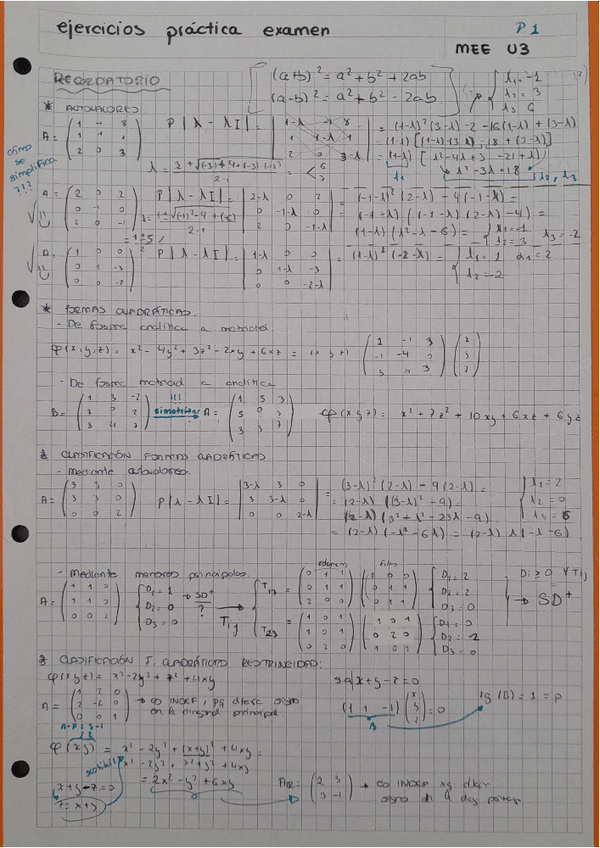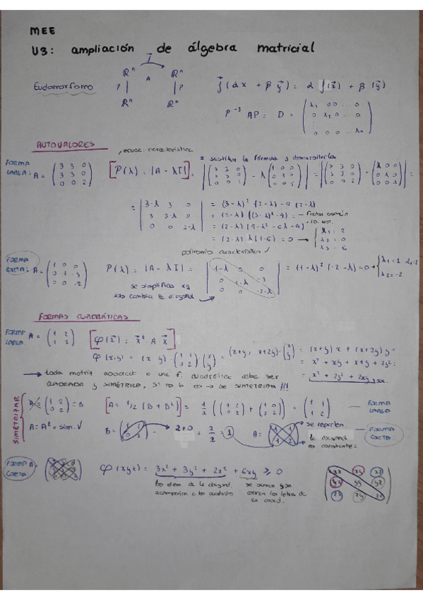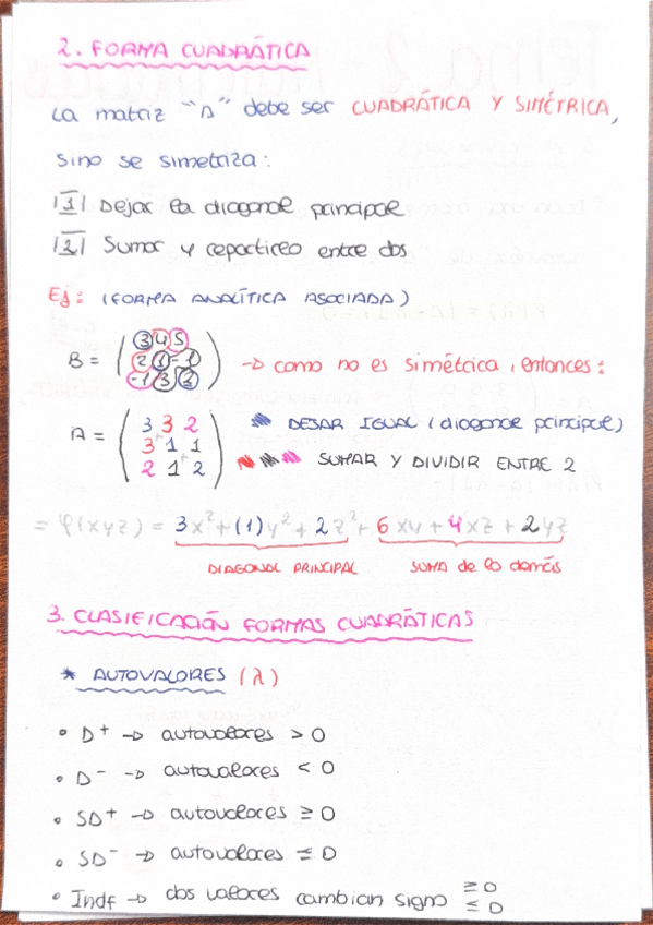 apuntes para examen con ejemplos de la unidad 3 de matemáticas para la economía y la empresa, formas cuadráticas, autovalores ...