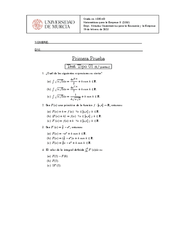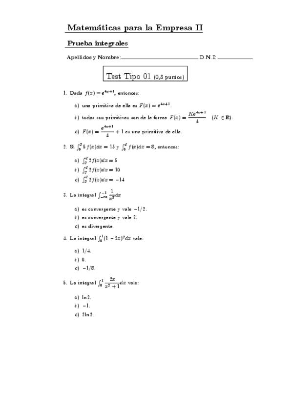 He publicado nuevos examenes de 1º MATEMÁTICAS PARA LA EMPRESA II: Pruebaintegrales24.pdf
