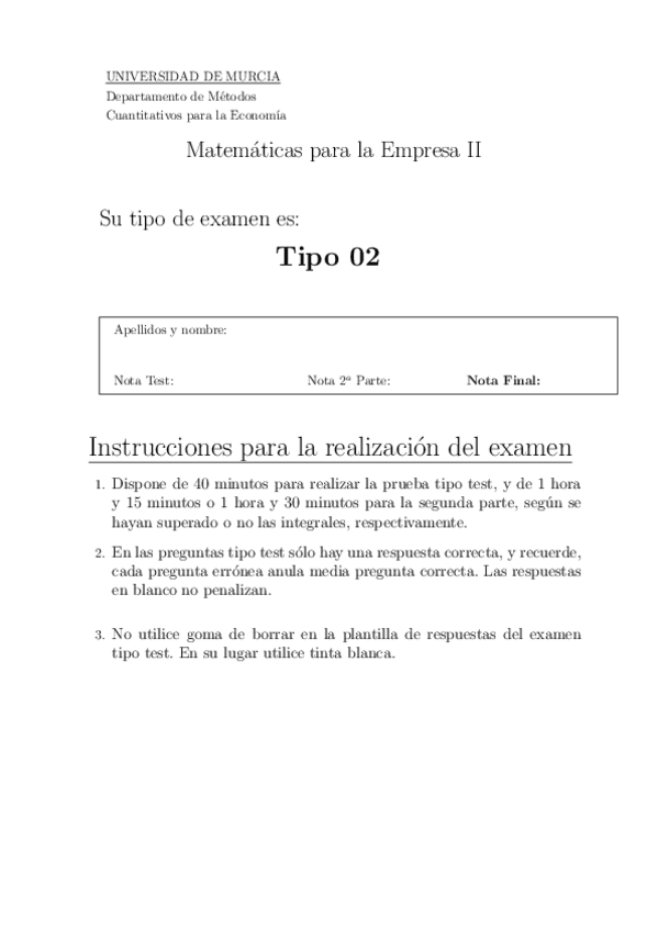 He publicado nuevos examenes de 1º MATEMÁTICAS PARA LA EMPRESA II: EJEMPLO-EXAMEN.pdf
