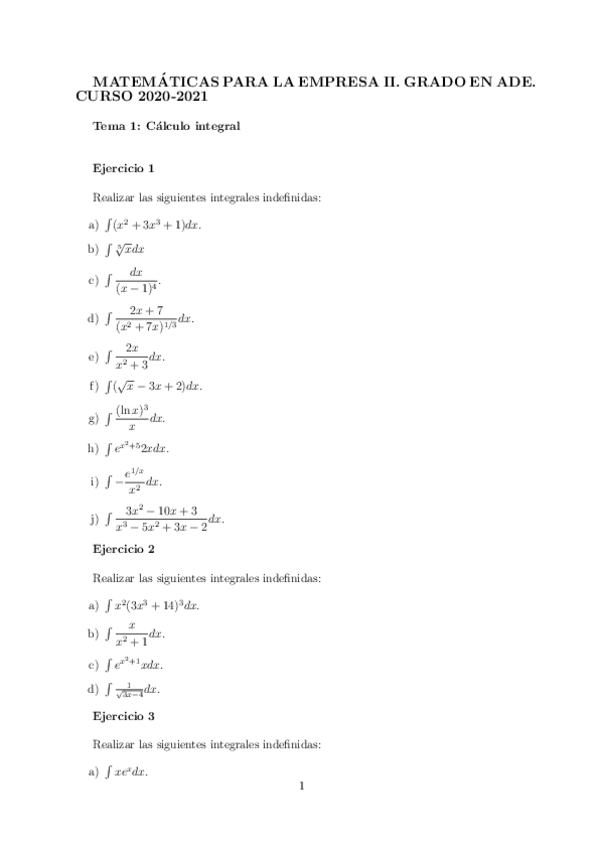 He publicado nuevos examenes de 1º MATEMÁTICAS PARA LA EMPRESA II: Integrales.pdf