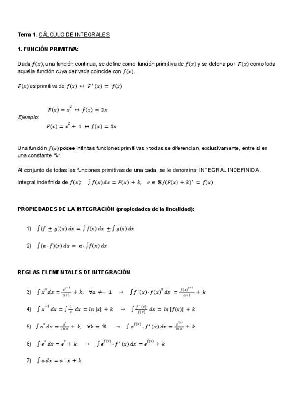 He publicado nuevos apuntes de 1º MATEMÁTICAS PARA LA EMPRESA II: Tema-1.-Integrales.pdf