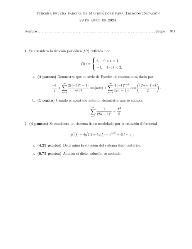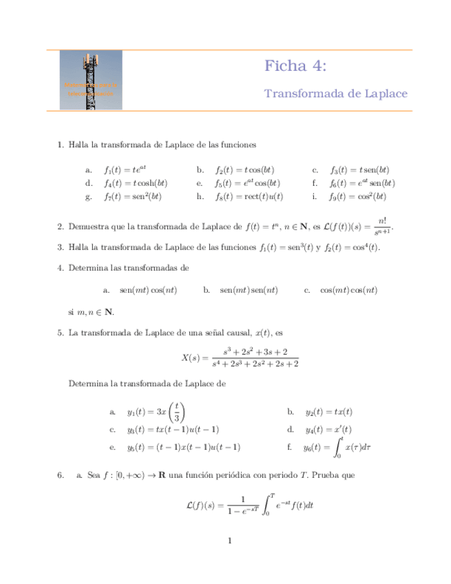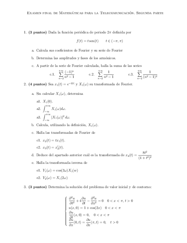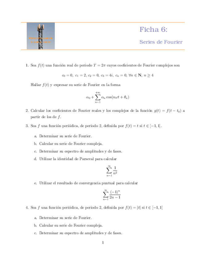 He publicado nuevos ejercicios de 1º Matemáticas para la telecomunicación: Ficha6TFourier.pdf