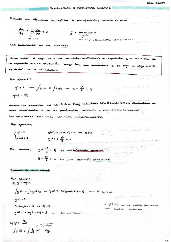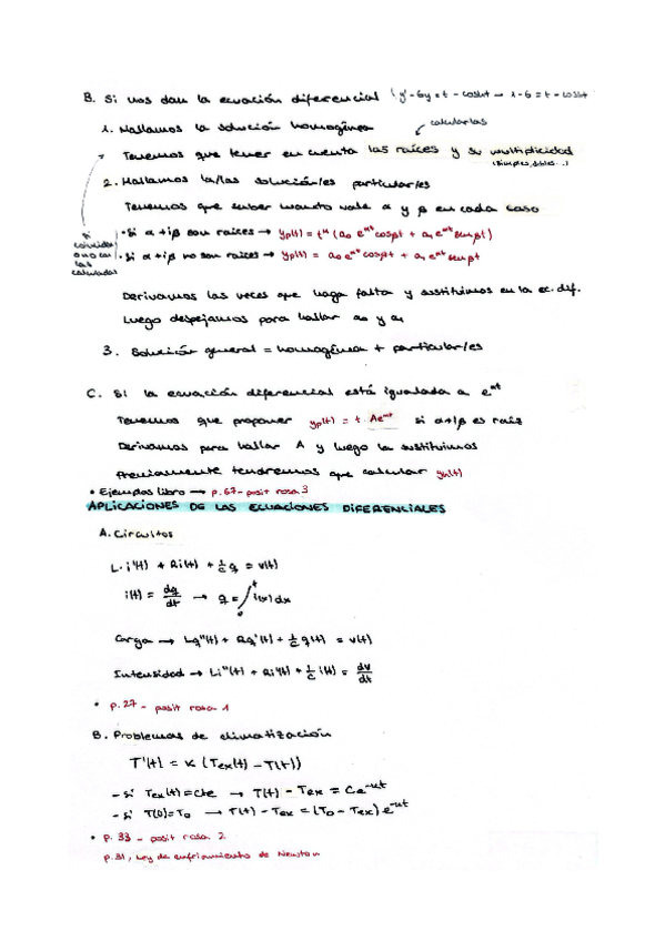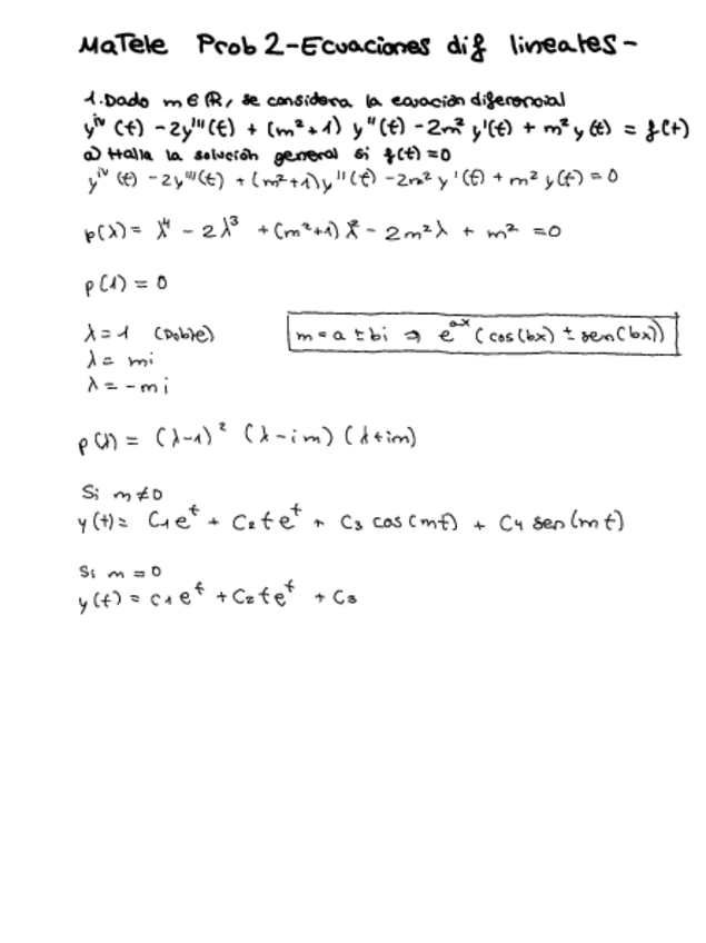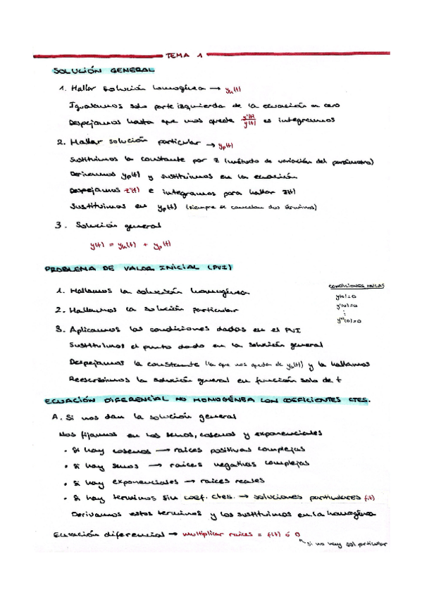 Resumen a Pizarra del contenido referente a resolver ecuaciones diferenciales