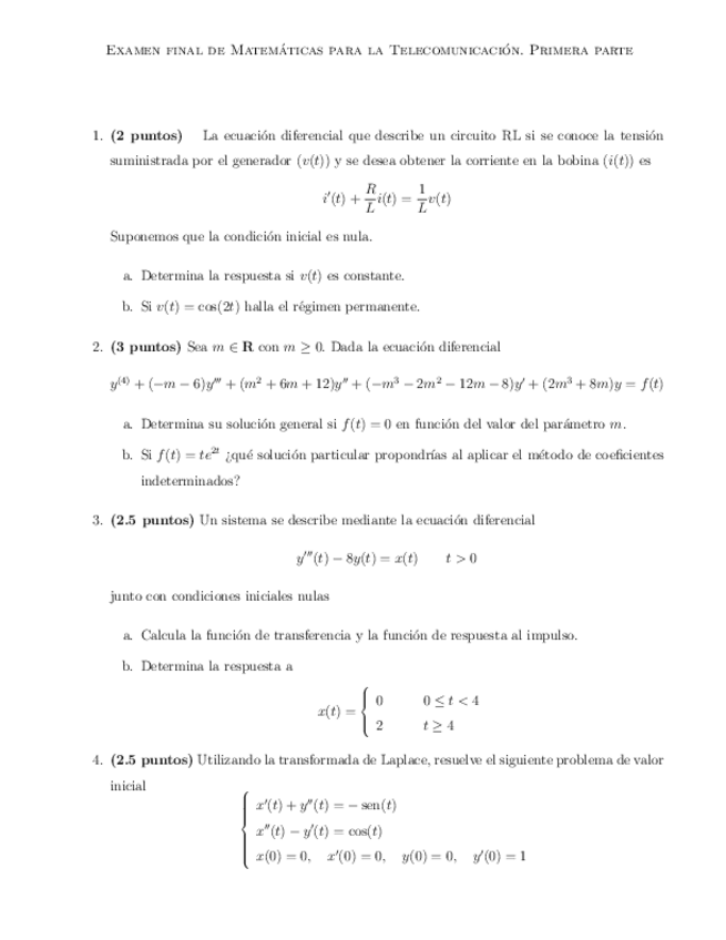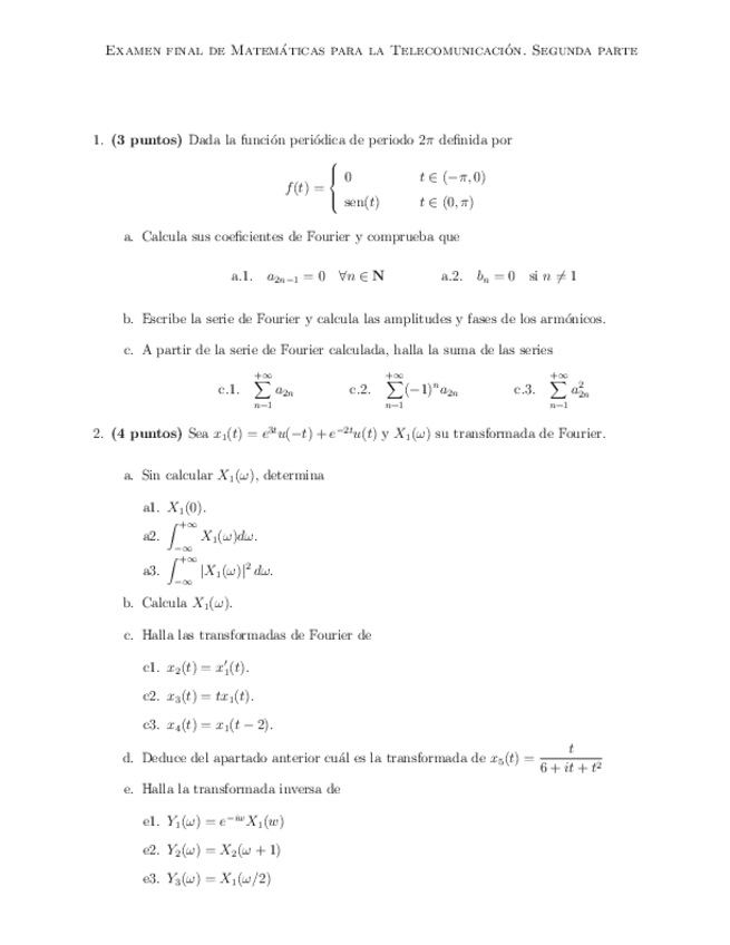 Matemáticas para la Telecomunicación