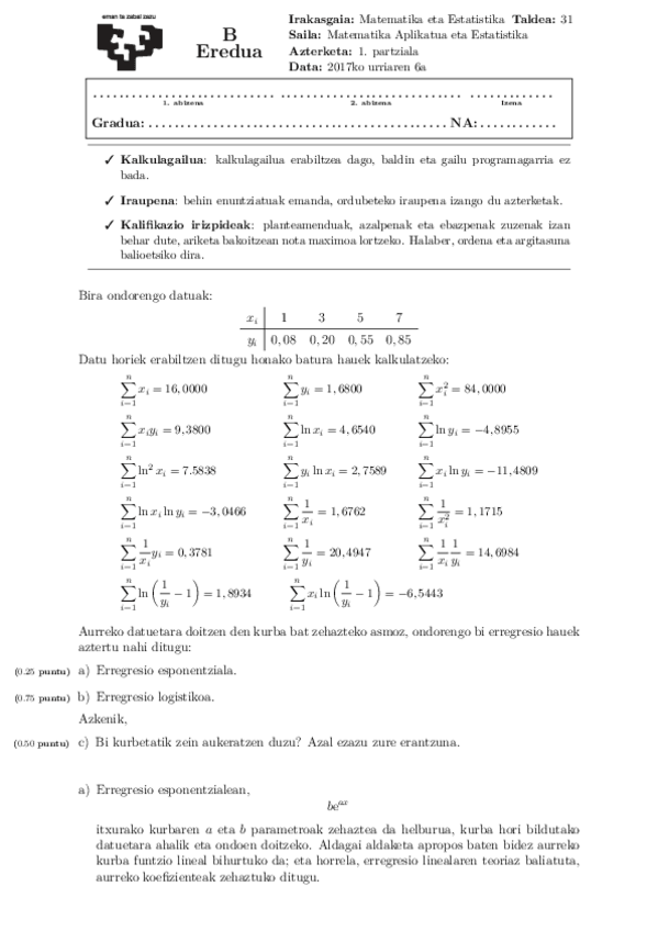 He publicado nuevos examenes de 1º Matematicas y Estadistica: 1o-PARCIAL-EKUAZIO-DIFERENTZIALEN-APLIKAZIOAK-MATE-A-EREDUA.pdf