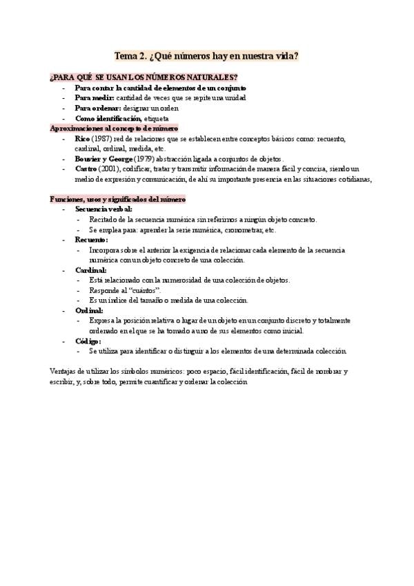Tema 1- apuntes de didáctica de las matemáticas en educación infantil