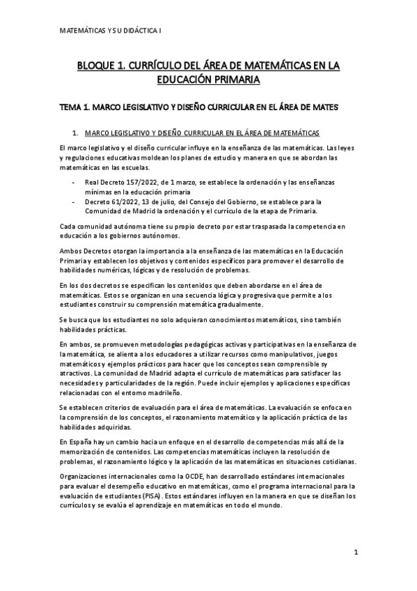 Matemáticas y Su Didáctica I
