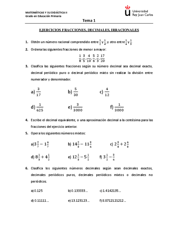 He publicado nuevos apuntes de 3º Matemáticas y Su Didáctica Ii: EJERCICIOS I