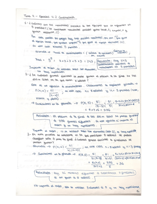 Ejercicios de Combinatoria para entregar corregidos correctamente