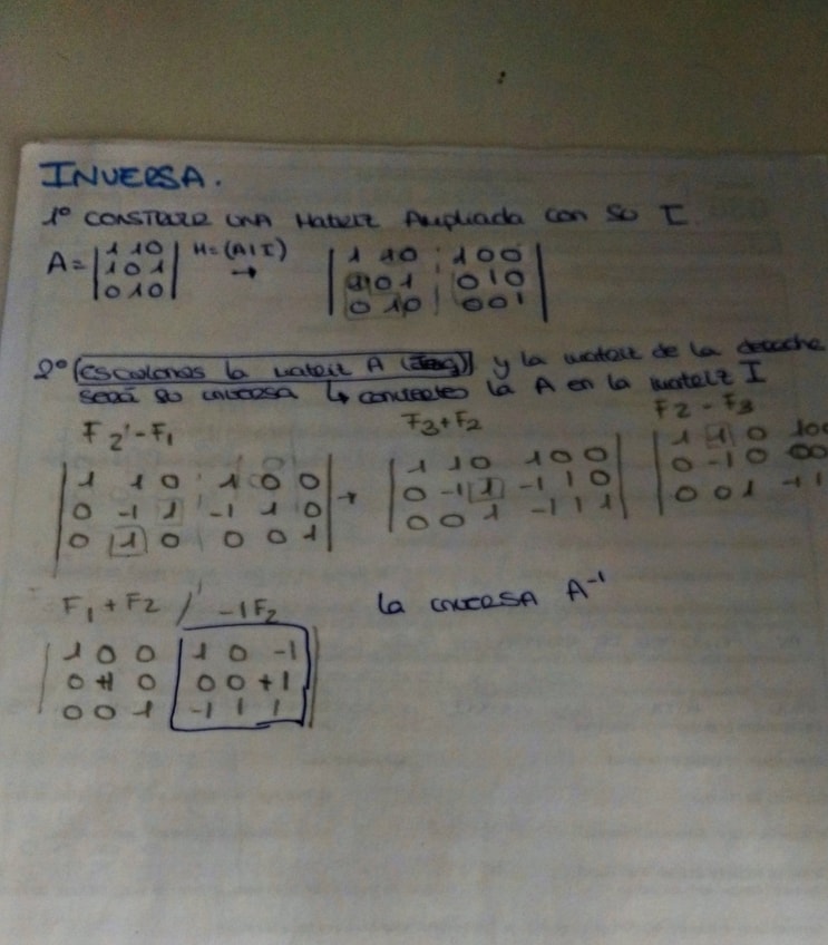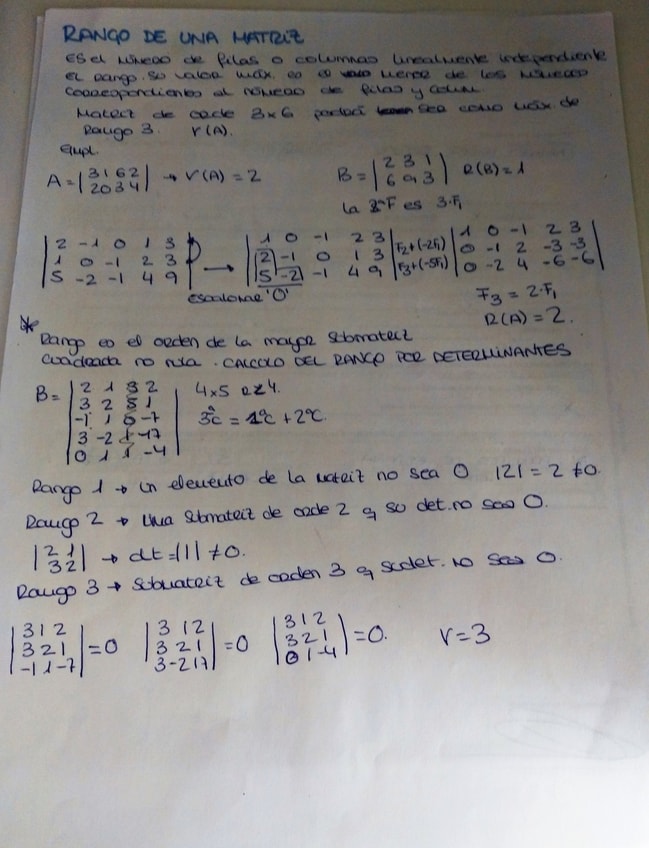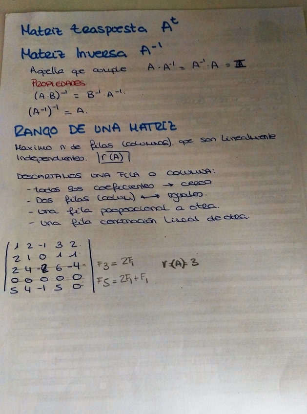 Apuntes a mano del primer tema de mates matrices suma producto determinantes, rango, matriz adjunta....