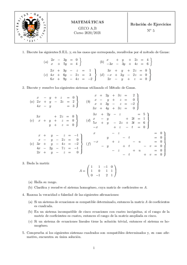 RELACIÓN 5 SISTEMAS ECUACIONES LINEALES