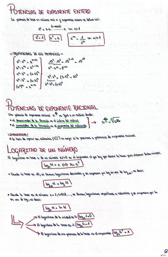 Resumen sobre potencias, logaritmos, propiedades de los logaritmos y operaciones de éstos junto con sus expresiones algebraicas. Ayuda extra para entender mejor el temario y que sea más fácil realizar las actividades.