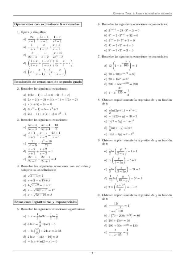 ejercicios repaso todos temas mates