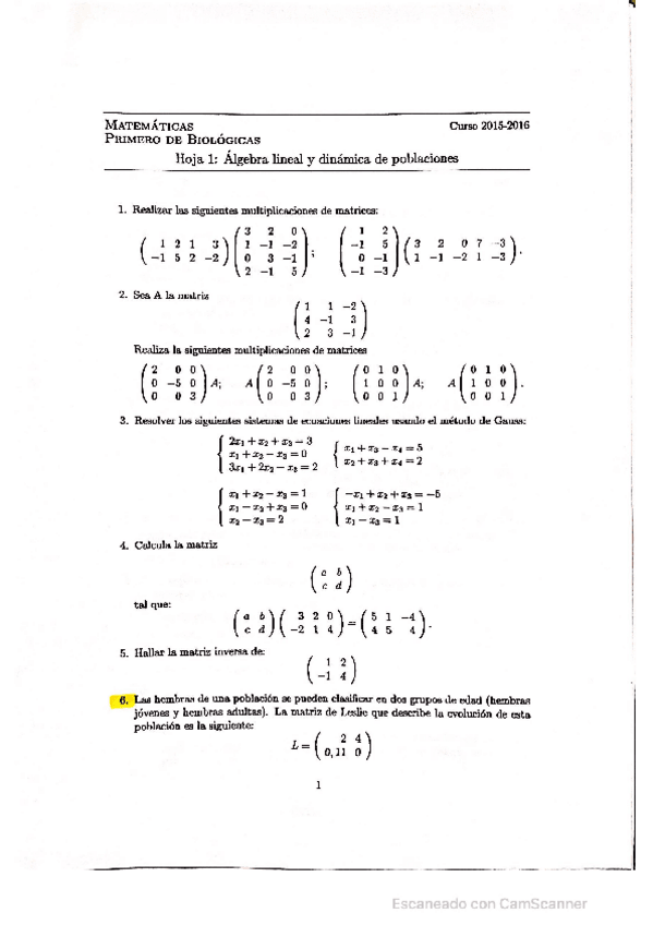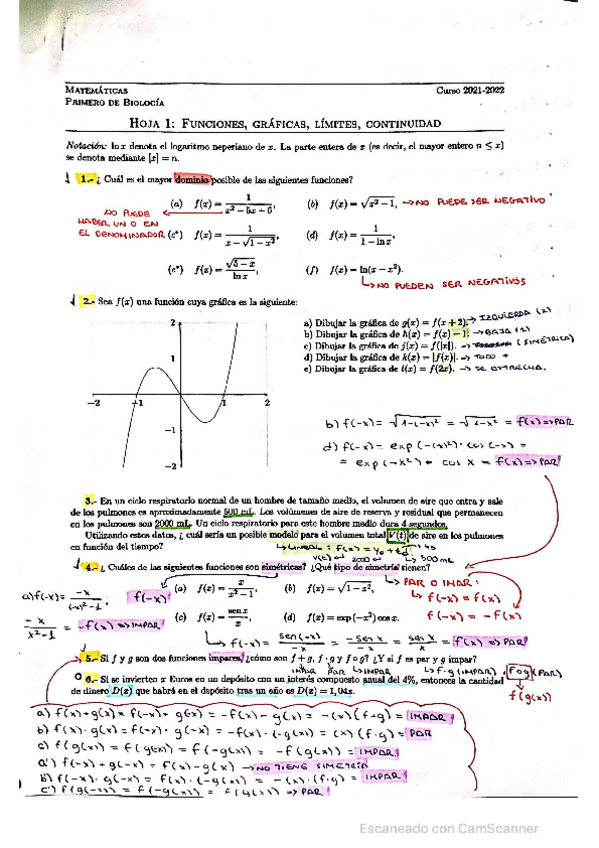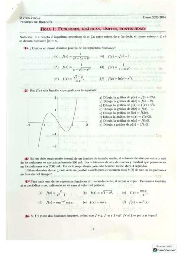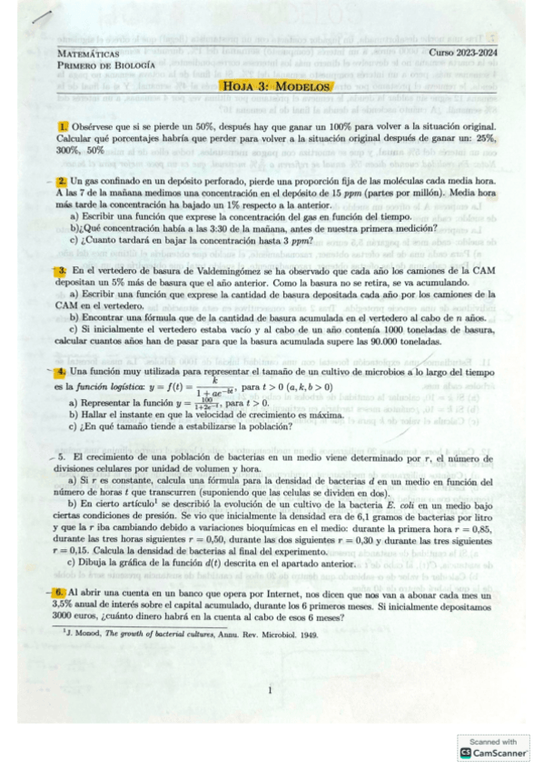 Ejercicios Matemáticas 1ºBio