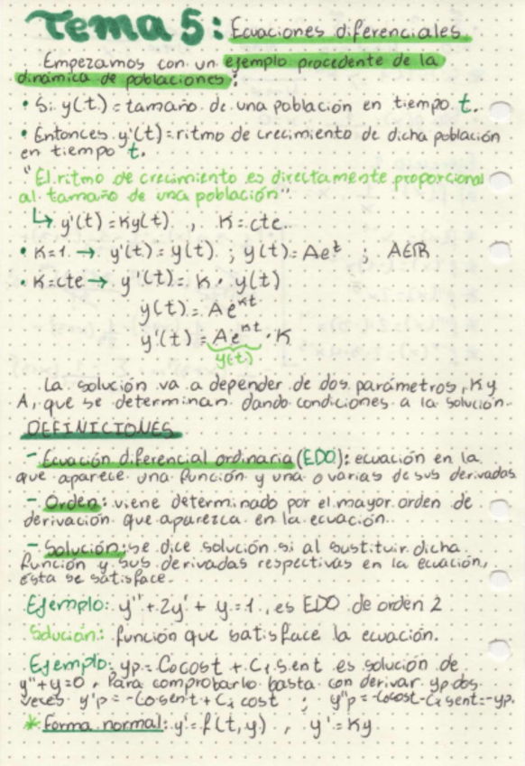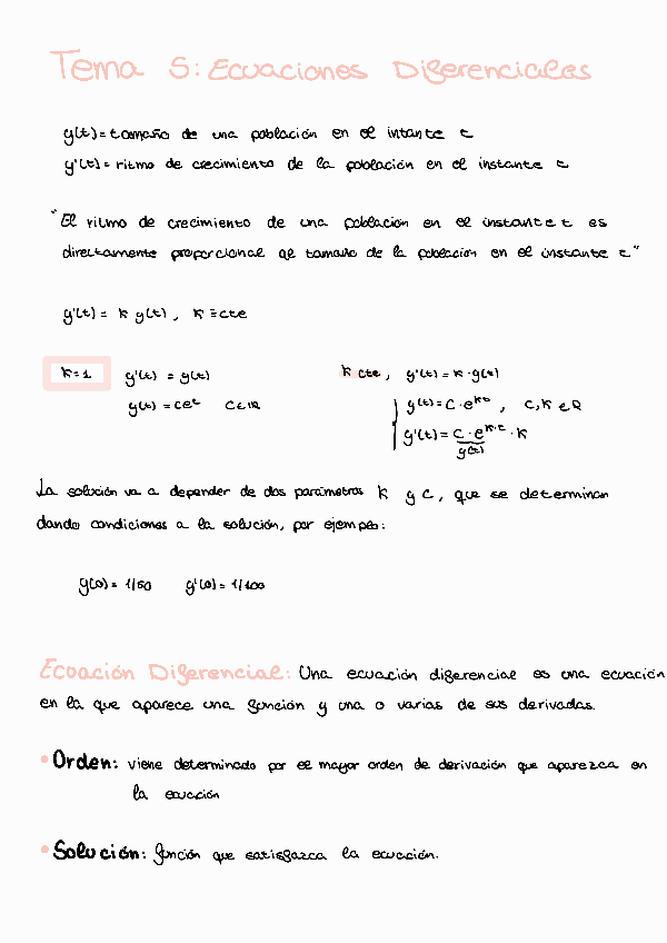 He publicado nuevos apuntes de 1º Matemáticas: Tema 5, Ecuaciones Diferenciales