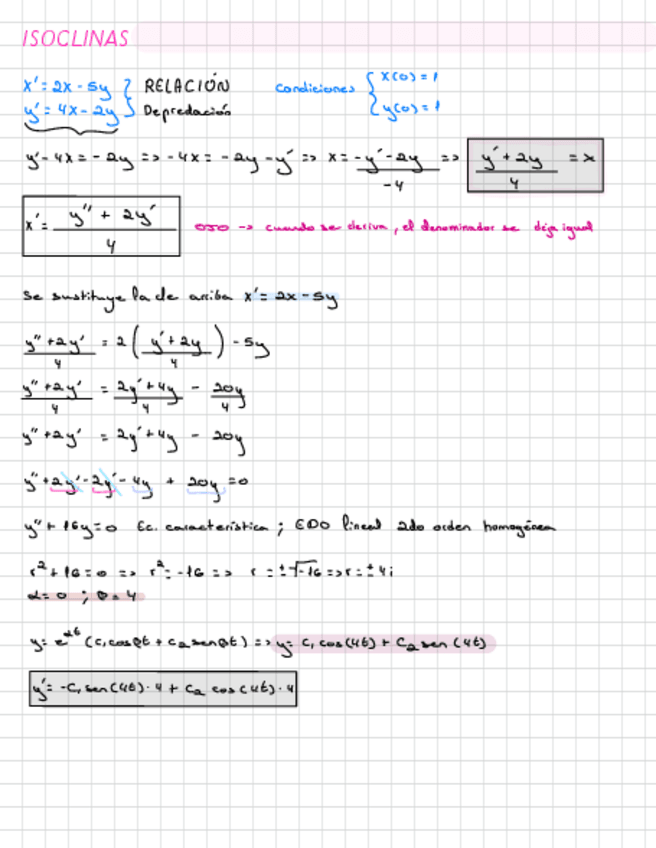 Parte de las EDOS del segundo parcial (2º orden, sistemas, isoclinas...)