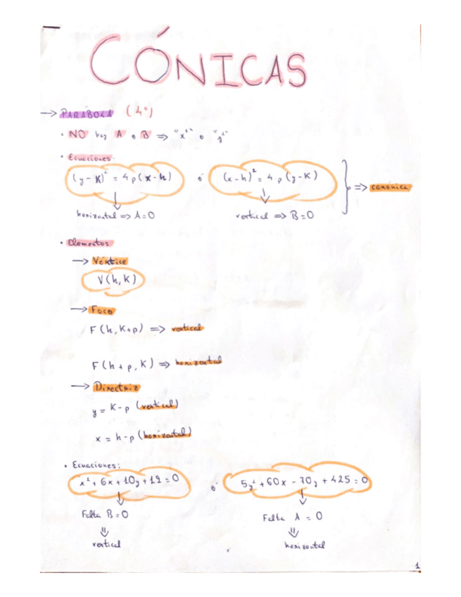 He publicado nuevos apuntes de 1º Matemáticas: Cónicas