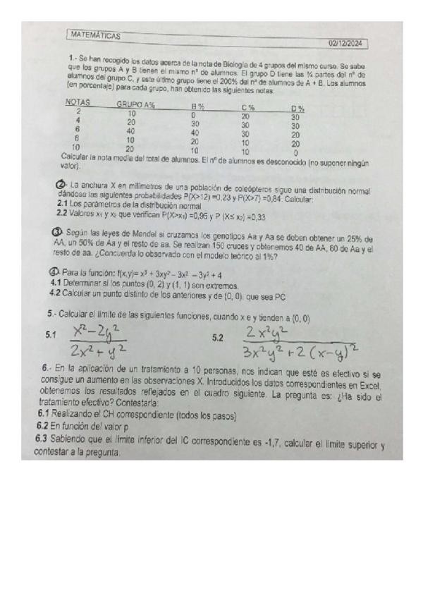 He publicado nuevos apuntes de 1º Matemáticas: examen resuelto 2023 dic