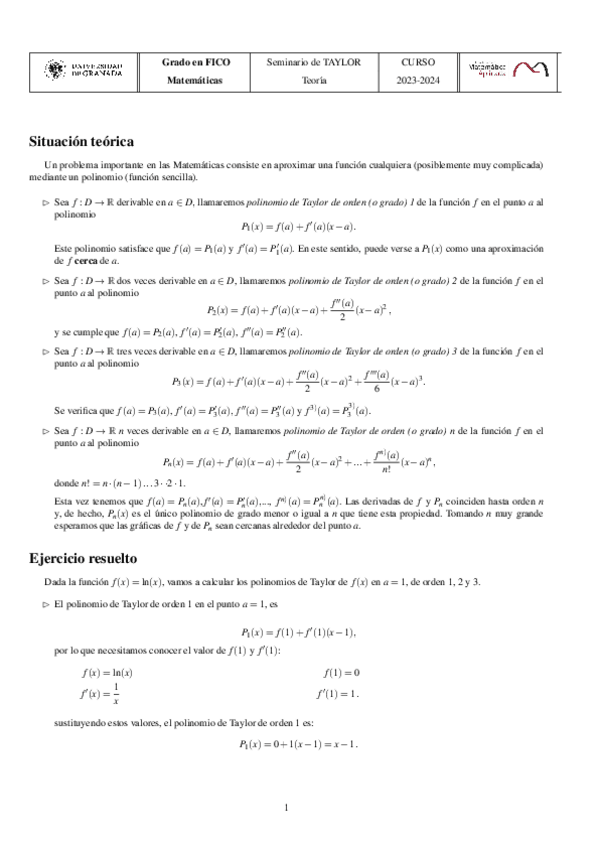 He publicado nuevos practicas de 1º Matemáticas: SEMINARIO-DE-TAYLOR.pdf