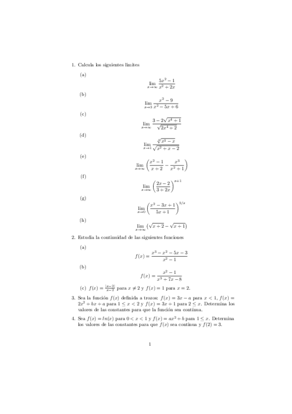 TEMA 1. FUNCIONES DE UNA VARIABLE. LIMITES Y CONTINUIDAD