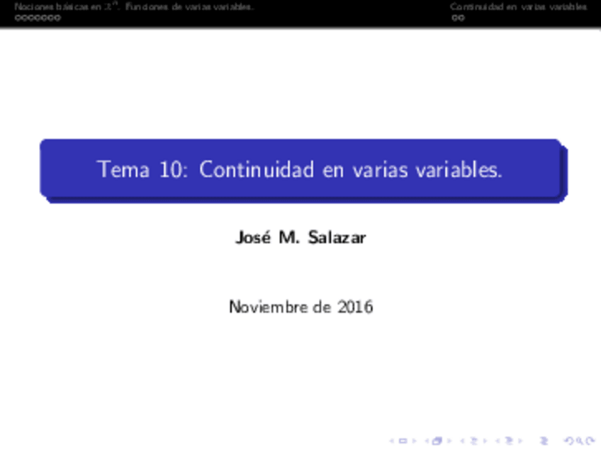 TEMA 4. CONTINUIDAD EN VARIAS VARIABLES