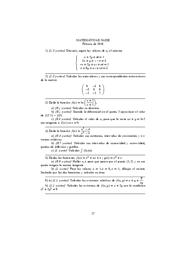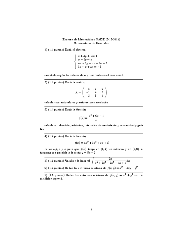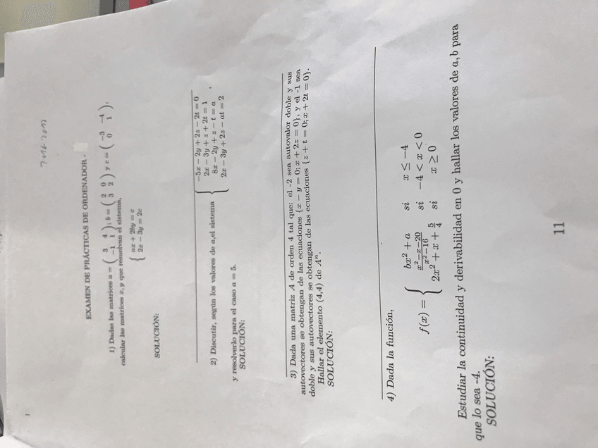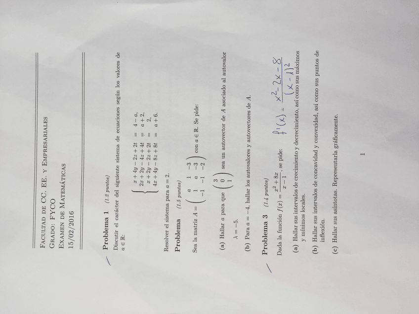 He publicado nuevos examenes de 1º Matemáticas: Examen primer parcial ade (mismos profesores)