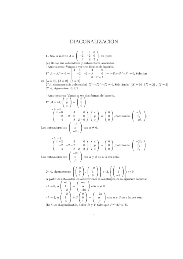 He publicado nuevos ejercicios de 1º Matemáticas: Diagonalización