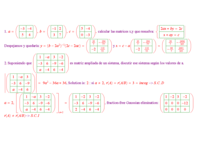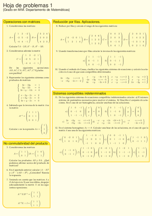 He publicado nuevos ejercicios de 1º Matemáticas: Matrices y sistemas