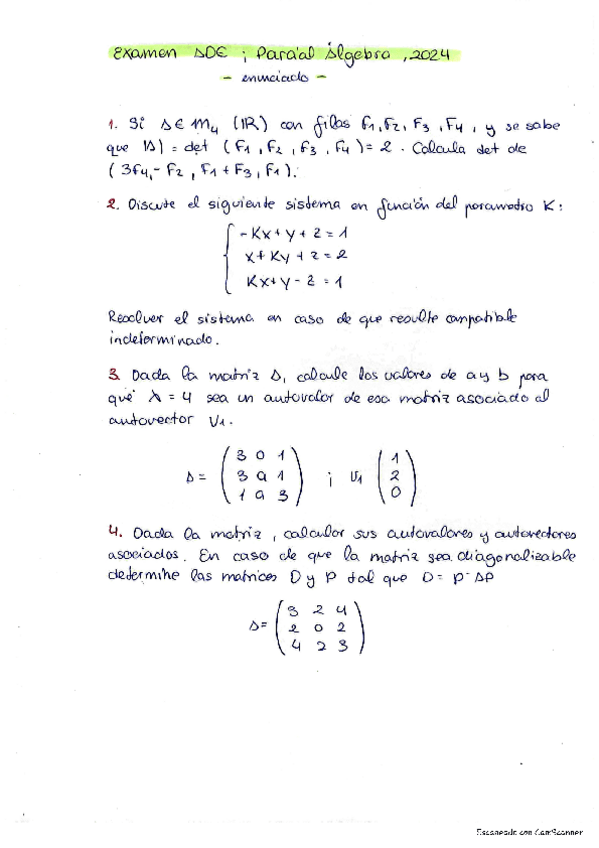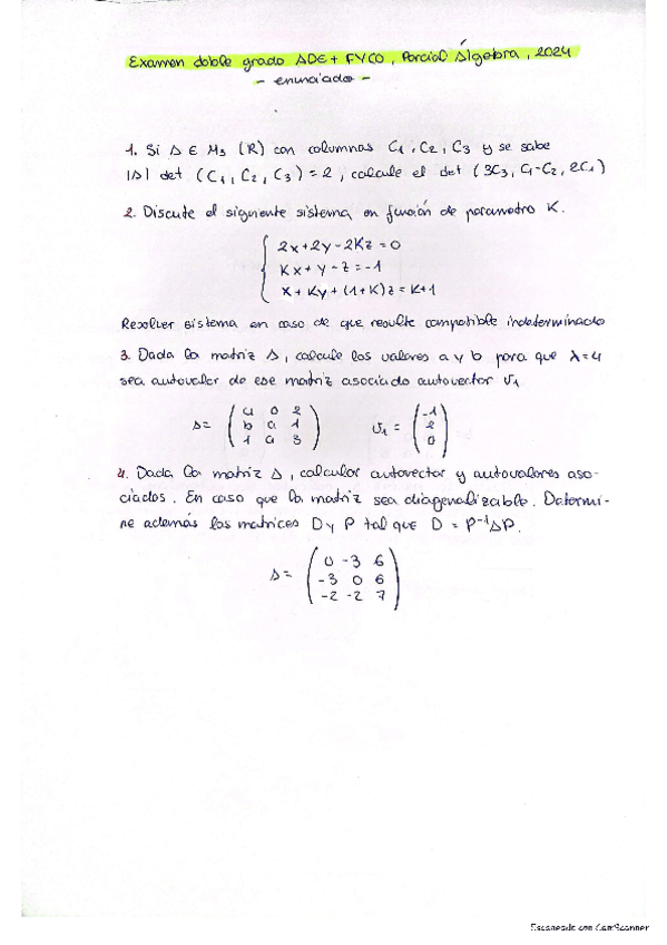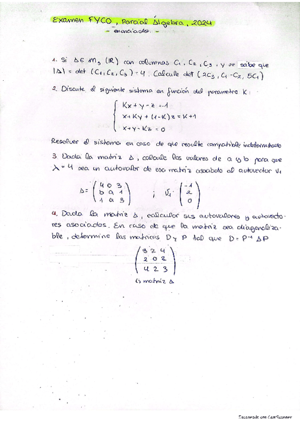 Examem FyCO, Parcial de Álgebra, 2024