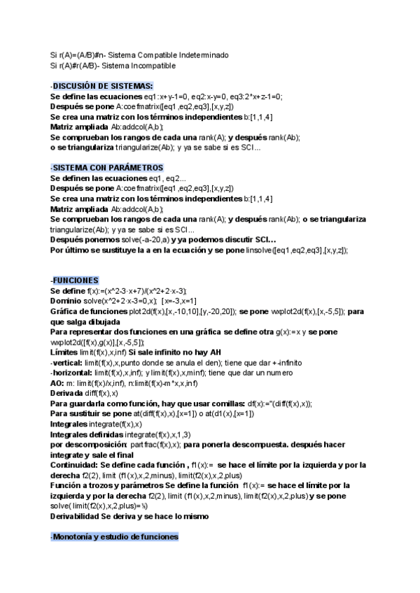 Se agradece que se descarguen el pdf resumen, aunque solo les vaya a servir, para el examen, el documento de maxima.