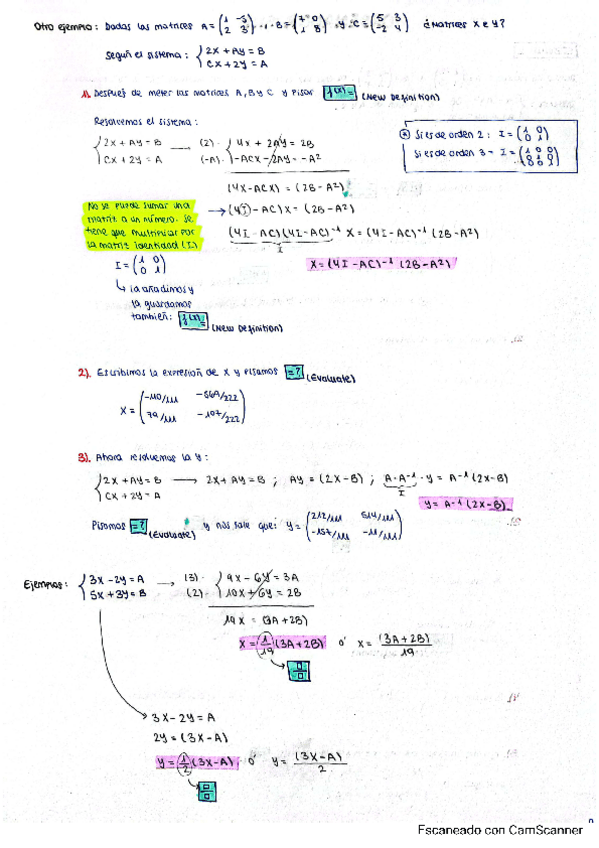 Resúmenes, apuntes y notas y ejercicios resueltos en clase bloque de álgebra