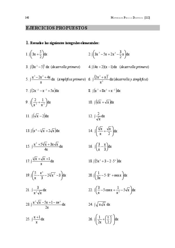 Ejercicios de Integrales Resueltos