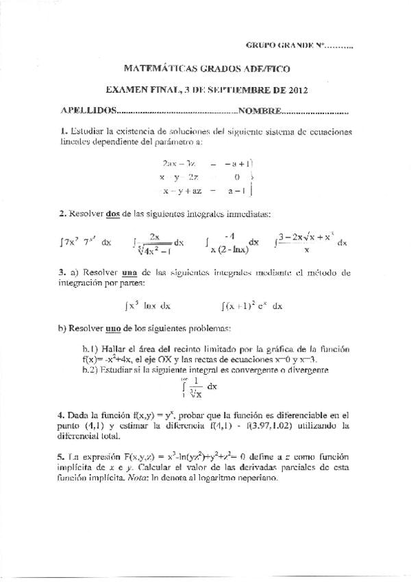 Exámenes resueltos matematicas