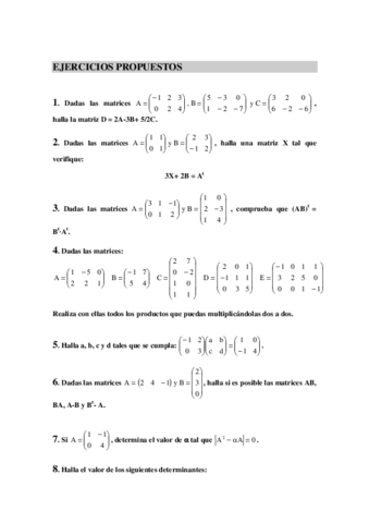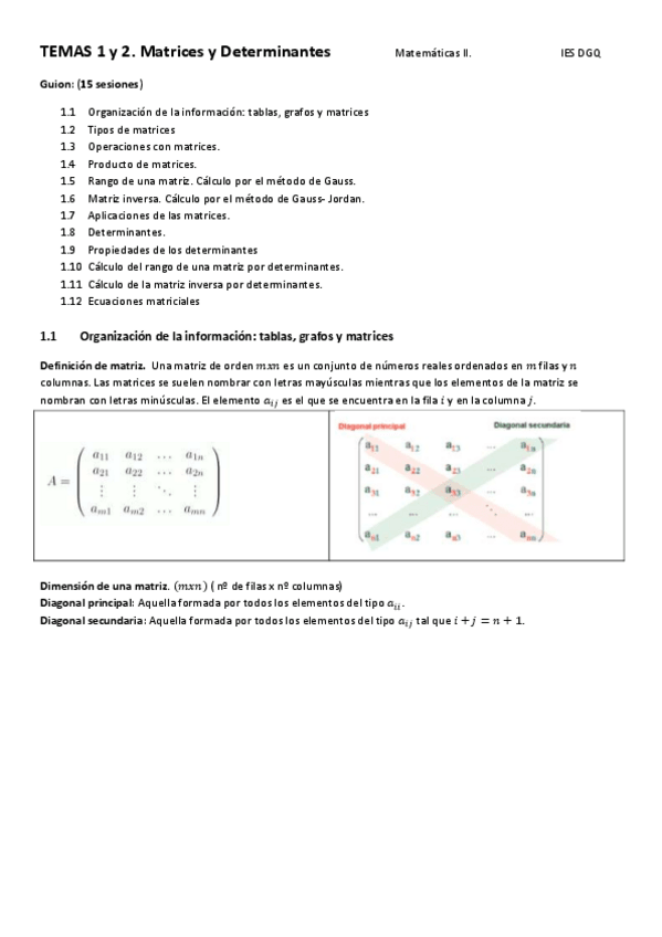 Resumen tema 1: matrices propiedades sistemas de ecuaciones inversas tipos de matrices determinante