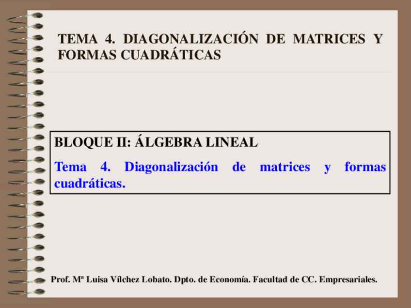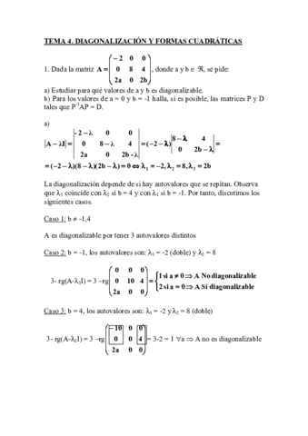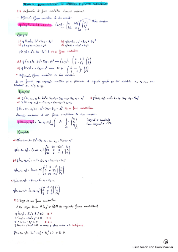 Resumen tema 4 matemáticas todas las fórmulas incluidas con ejemplos resueltos Diagonalizacion formas cuadráticas etc