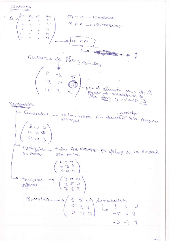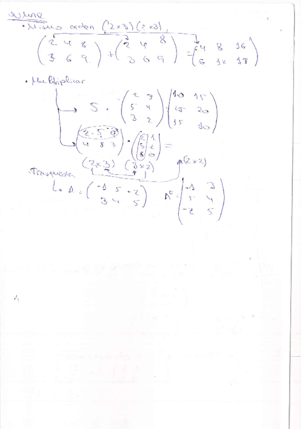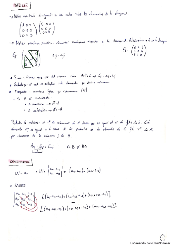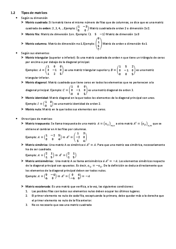 Tema matrices explicado a detalle con formulas, determinante, inversa, etc. Los sistemas están en otro documento