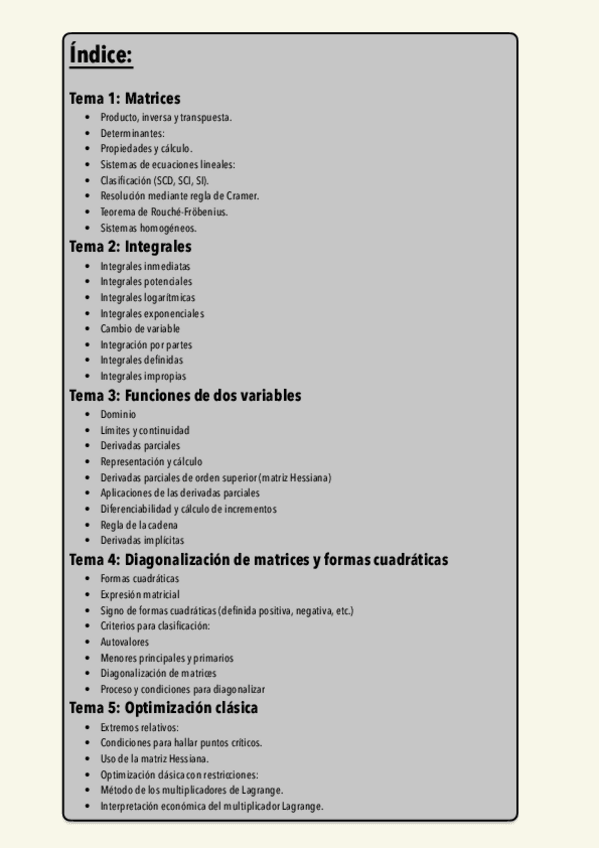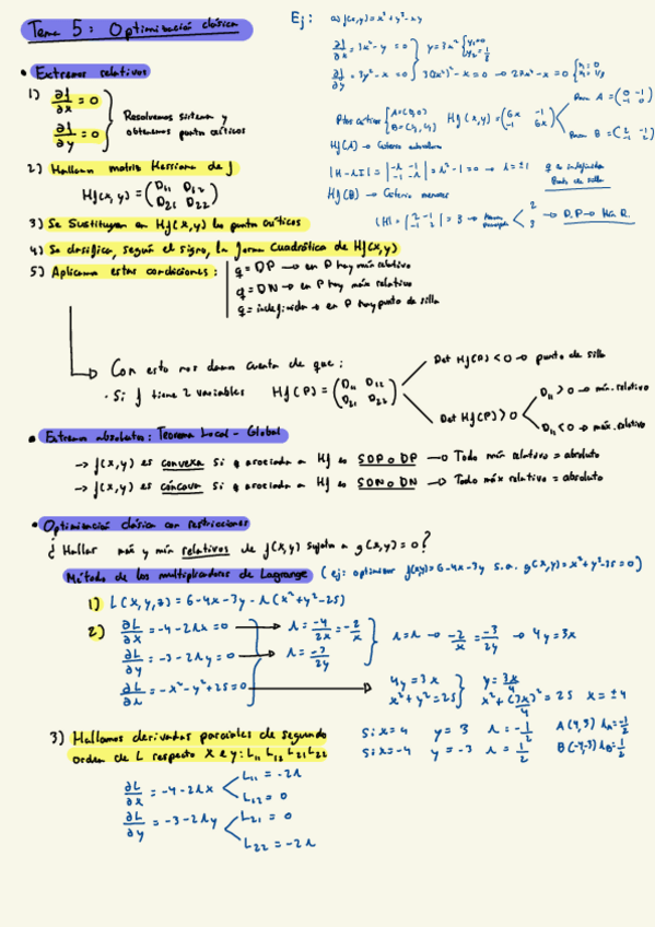 Resumen tema 5 optimización clásica con dos y tres variables y clasificación de las formas cuadráticas optimización con restricciones e interpretación económica de Lagrange