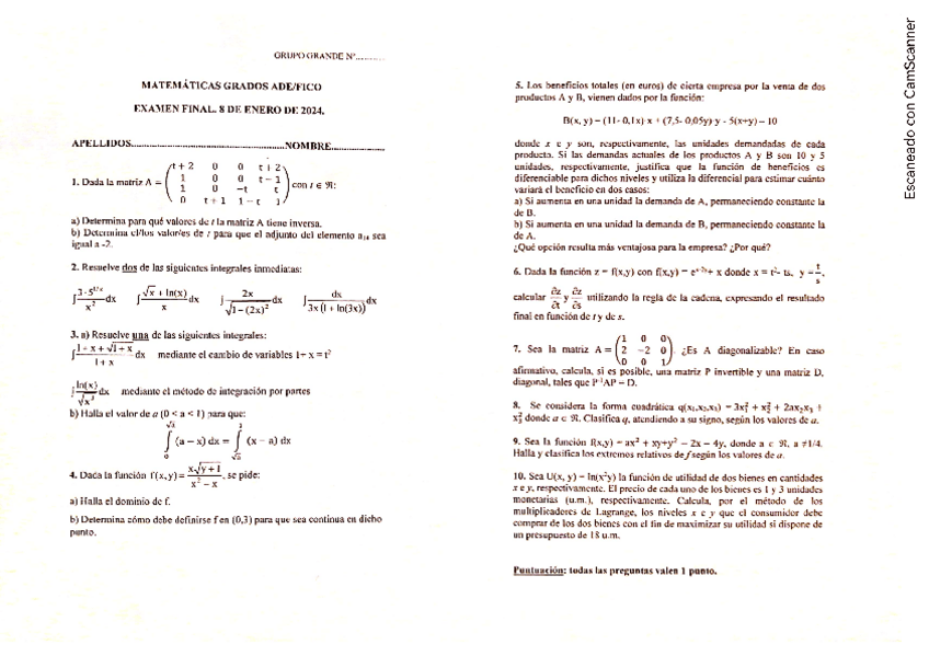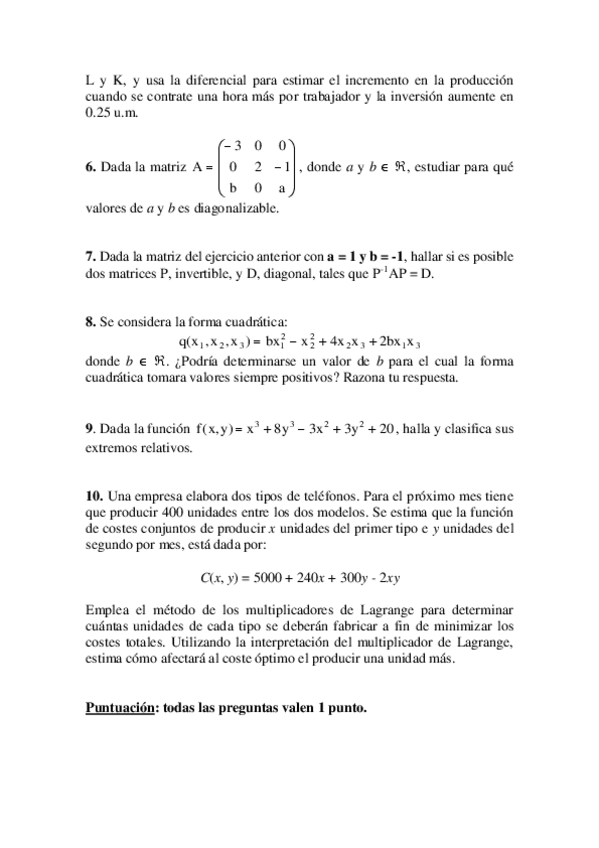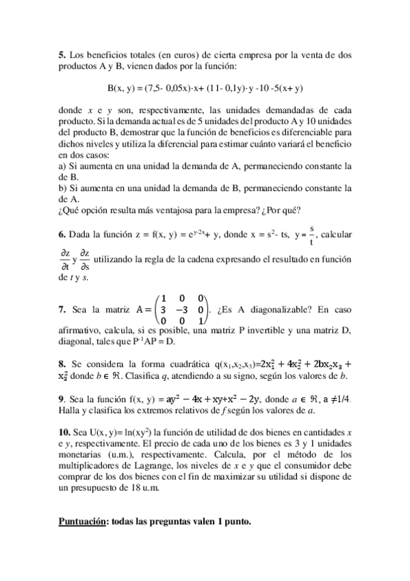 examenes matematicas empresariales