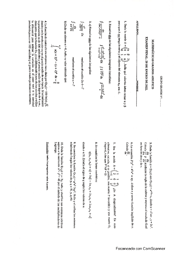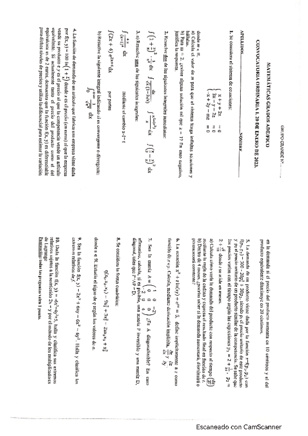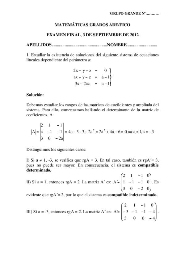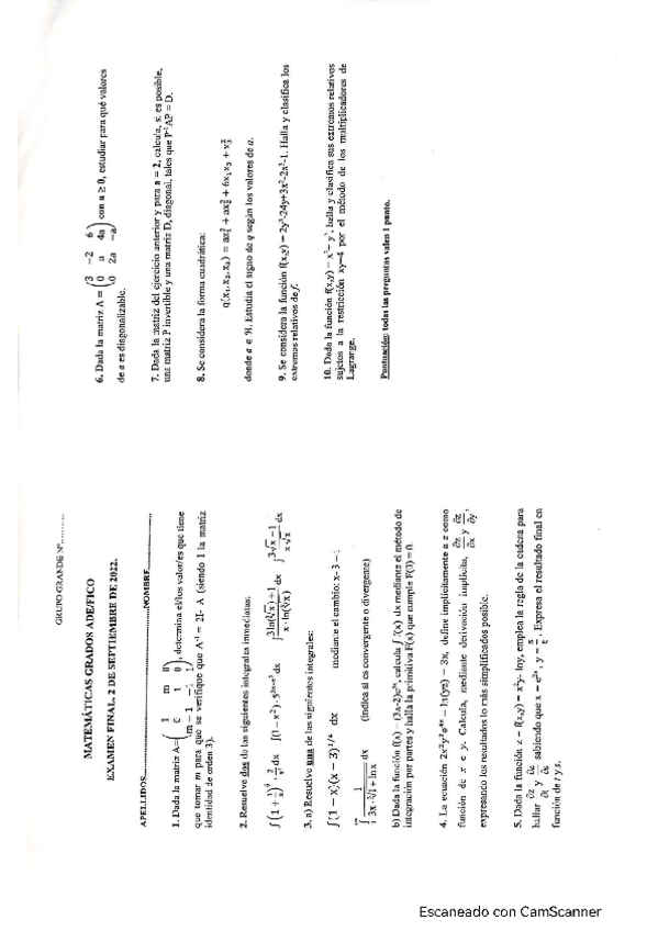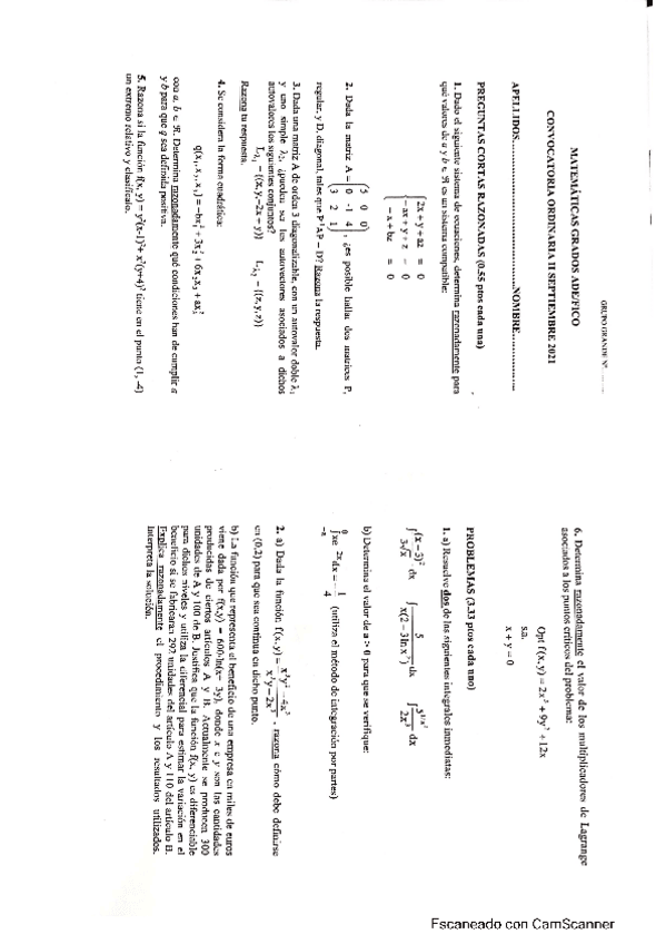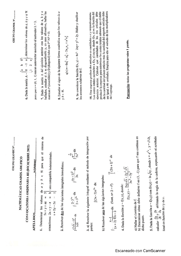 Exámenes resueltos matematicas