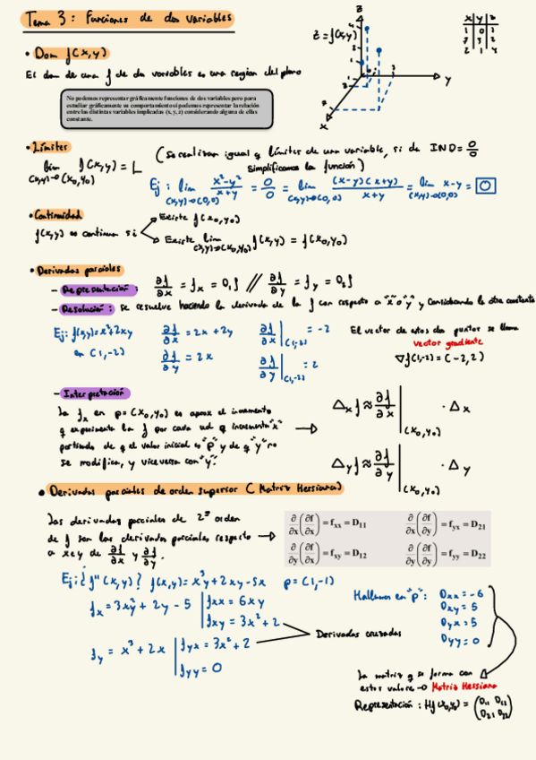 Resumen tema 3: funciones de dos variables con ejemplos y todas las formulas