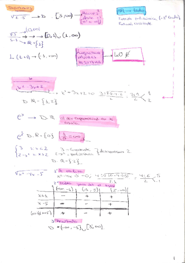 ejercicios sobre dominio, derivadas e integrales con explicación simple para facil comprensión
